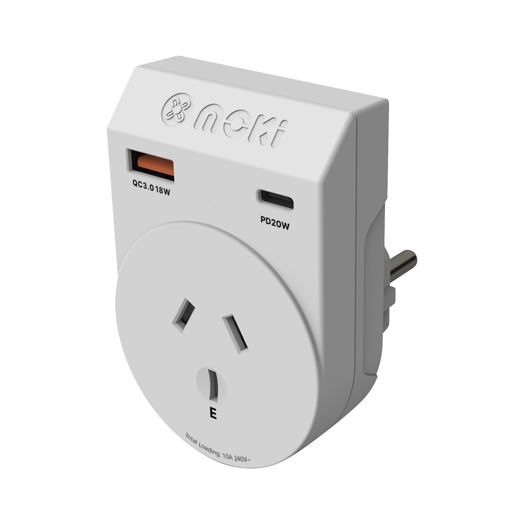 Outbound AU/NZ to Europe Travel Adaptor PLUS adapts Australian and New Zealand plugs for use in Europe (Plug Type F). Each model features a PD 20W USB-C port for fast-charging compatible devices and a QC 3.0 USB-A port for rapid charging. Perfect for if you're heading overseas, the Moki Travel Adaptor Plus provides a convenient and efficient charging option.
