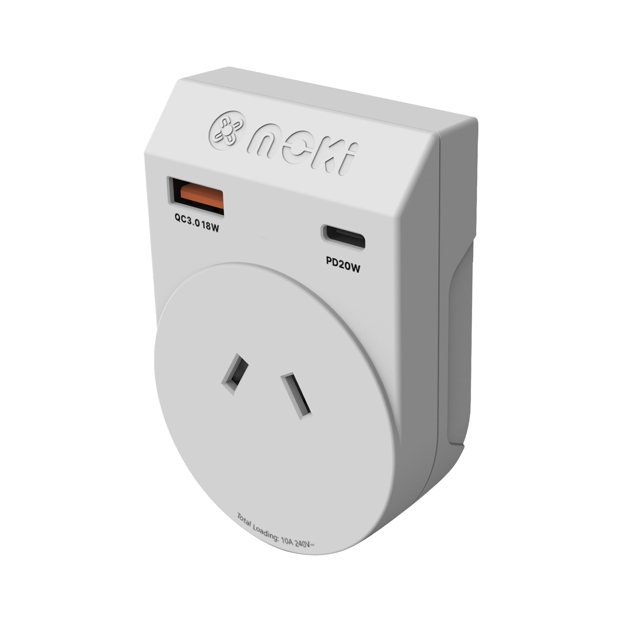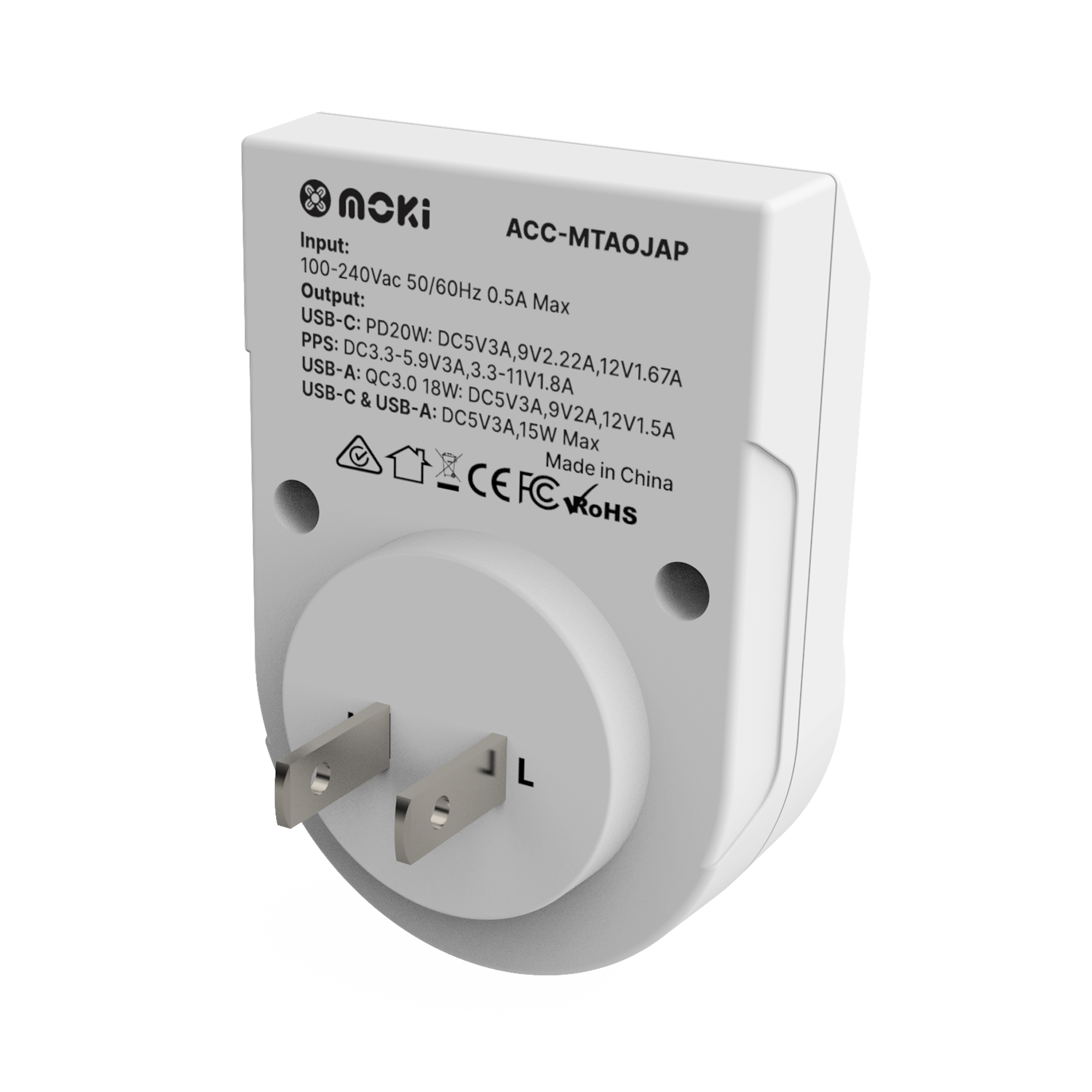 Outbound AU/NZ to Japan Travel Adaptor PLUS adapts Australian and New Zealand plugs for use in Japan (Plug Type A). Each model features a PD 20W USB-C port for fast-charging compatible devices and a QC 3.0 USB-A port for rapid charging. Perfect for if you're heading overseas, the Moki Travel Adaptor Plus provides a convenient and efficient charging option.